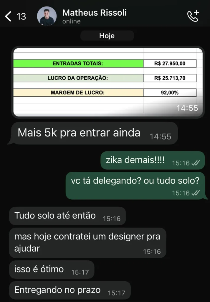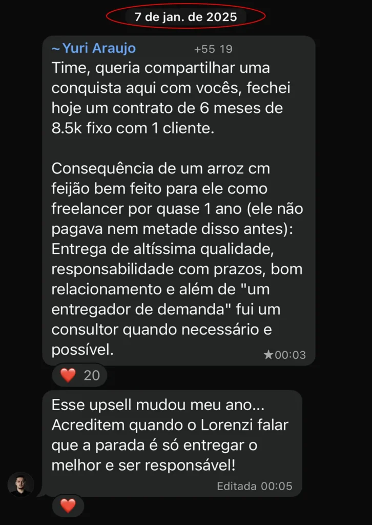 Aplicando os ensinamentos e ferramentas, o Yuri fechou um só contrato de R$50.000 (6 meses):