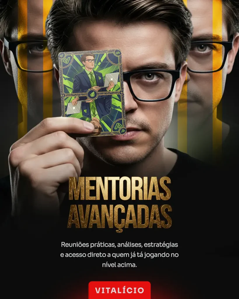 Visão de cima com execução na veia. Reuniões práticas, análises, estratégias e acesso direto a quem já tá jogando no nível acima. Pra quem cansou de adivinhar o que fazer.