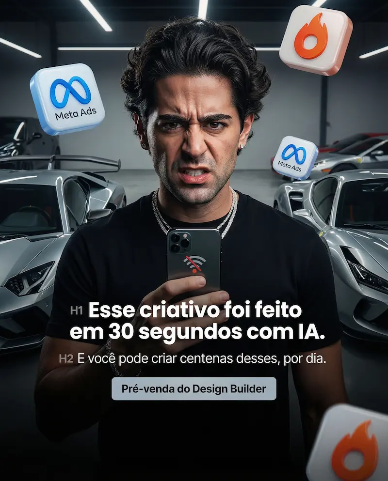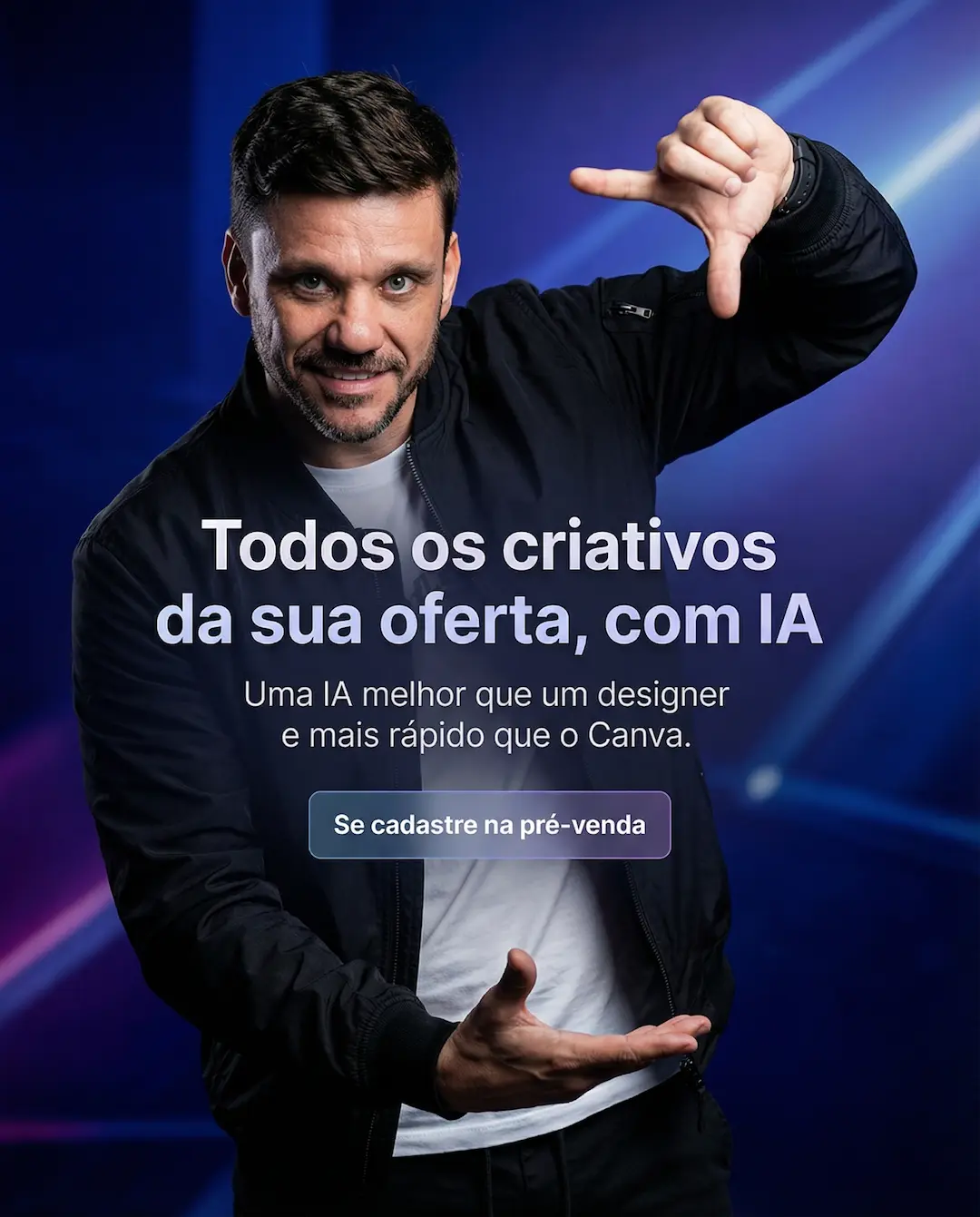 Agora, uniu todo seu conhecimento em uma IA, que não só faz designs como ele faria, mas com o conhecimento estratégico desenvolvido nos últimos anos para te entregar o material PRONTO pra te ajudar a vender mais.