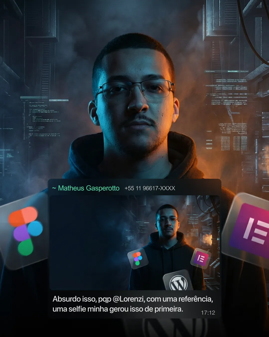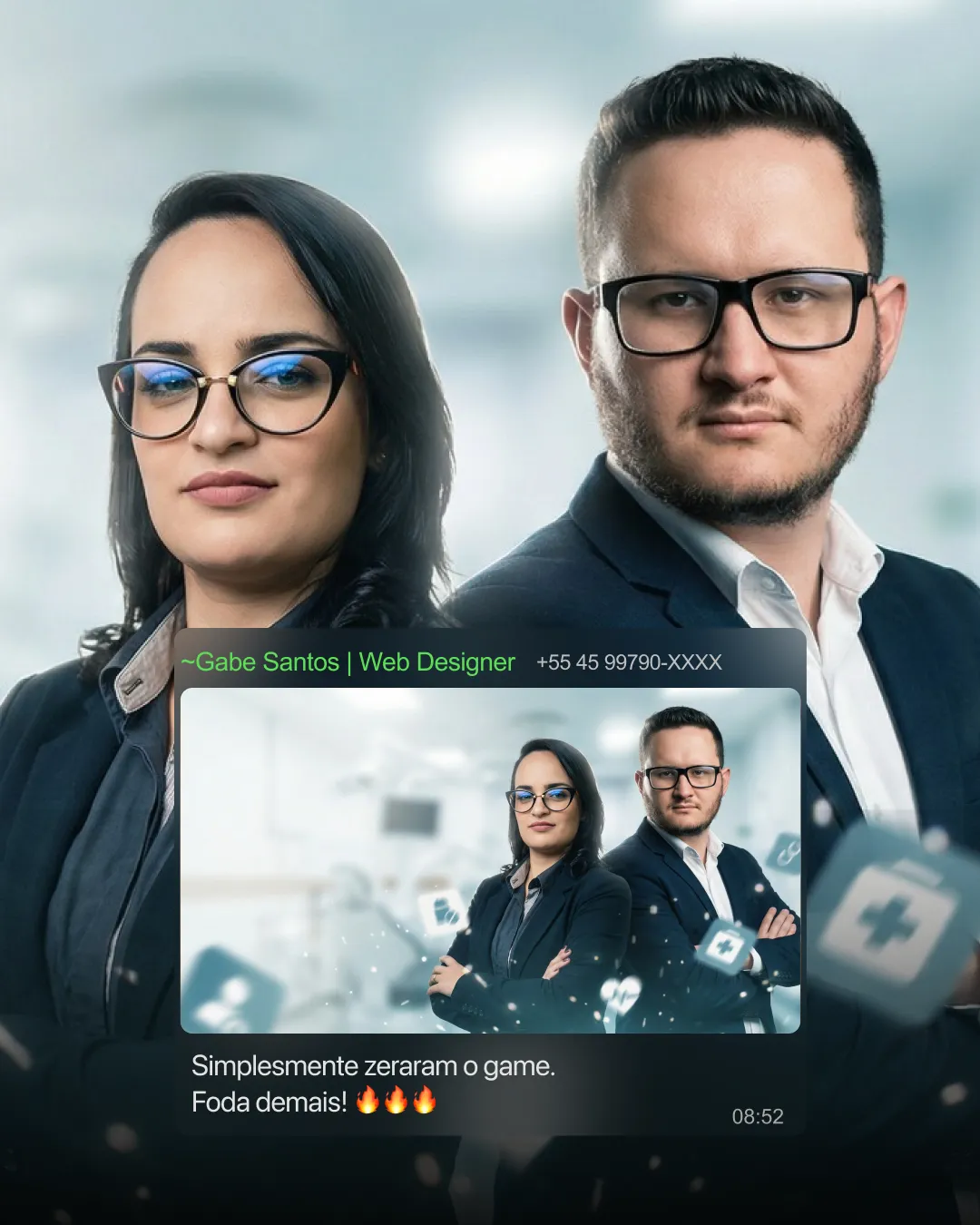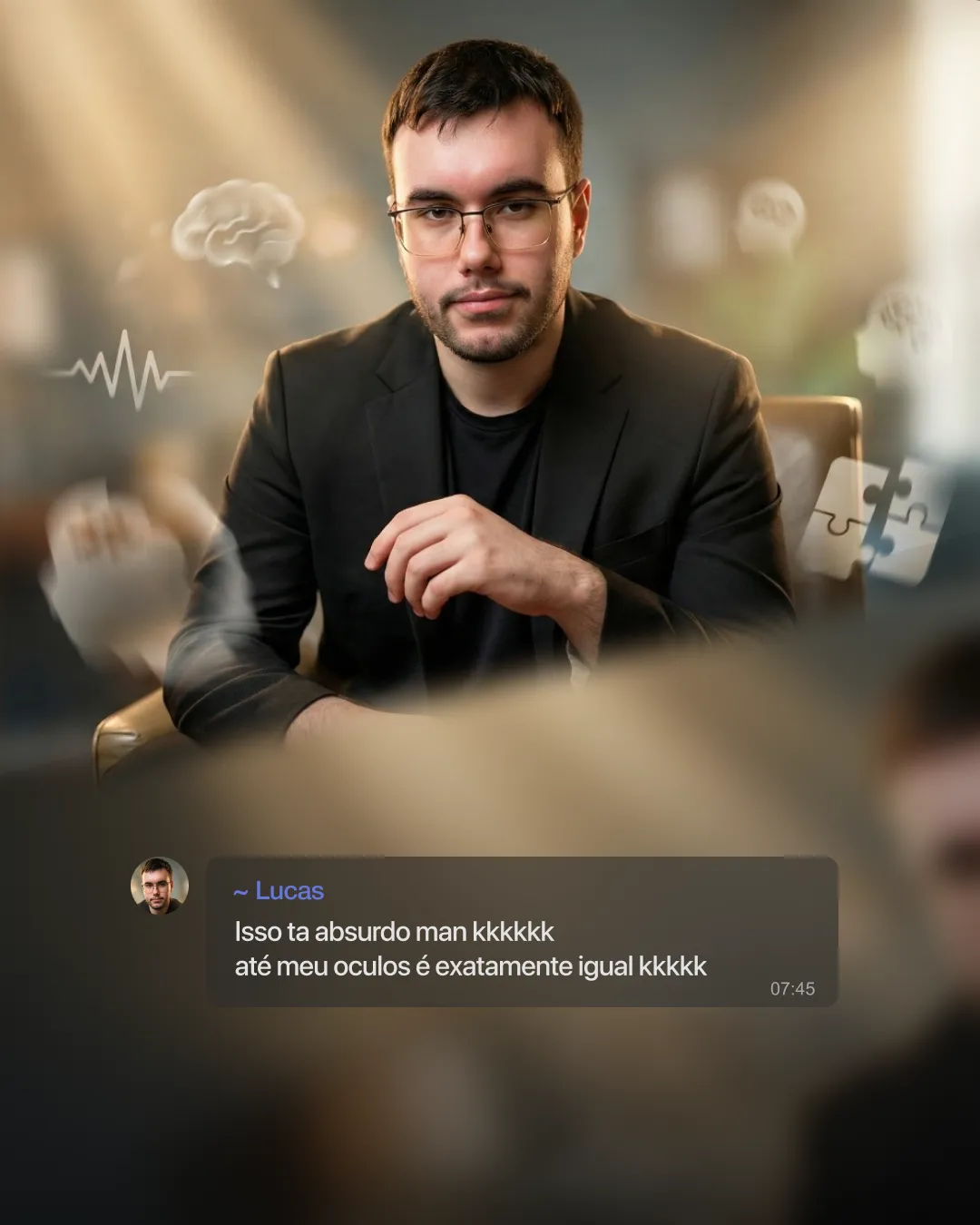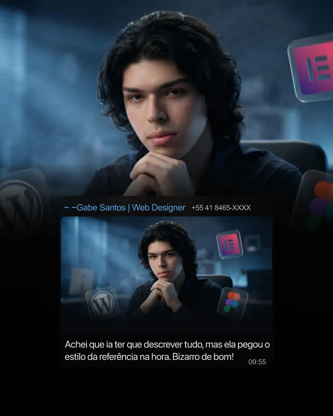 Coloque aqui Nicho / Profissão, Descrição do Ambiente, Elementos Flutuantes 3D e outros contextos que vão trazer direção no design.